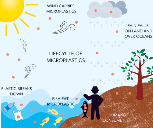 A 2023 Newsweek article by Pandora Dewan, “‘Plastic Rainfall’ Contaminating Nearly Everything People Eat and Drink,” explained that 50-75 trillion pieces of microplastics are found in the world’s oceans, many of which end up in our food and waterways.